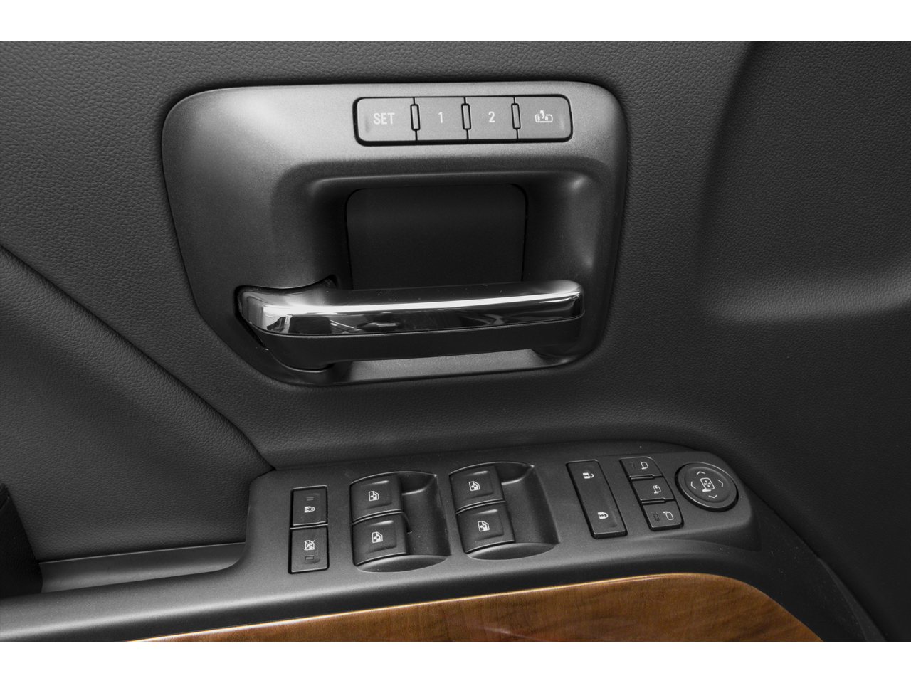 - Door panel insert: Simulated wood and metal-look door panel insert